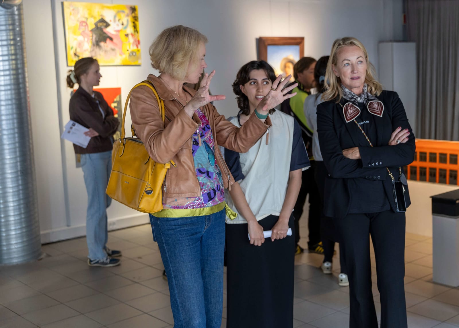 Utstillingen ble offisielt åpnet med snorklipping av Diana Ahmedi (18), utstillingens yngste kunstner, sammen med Morten Borge, konsernsjef i Ferd som deler sine tanker: